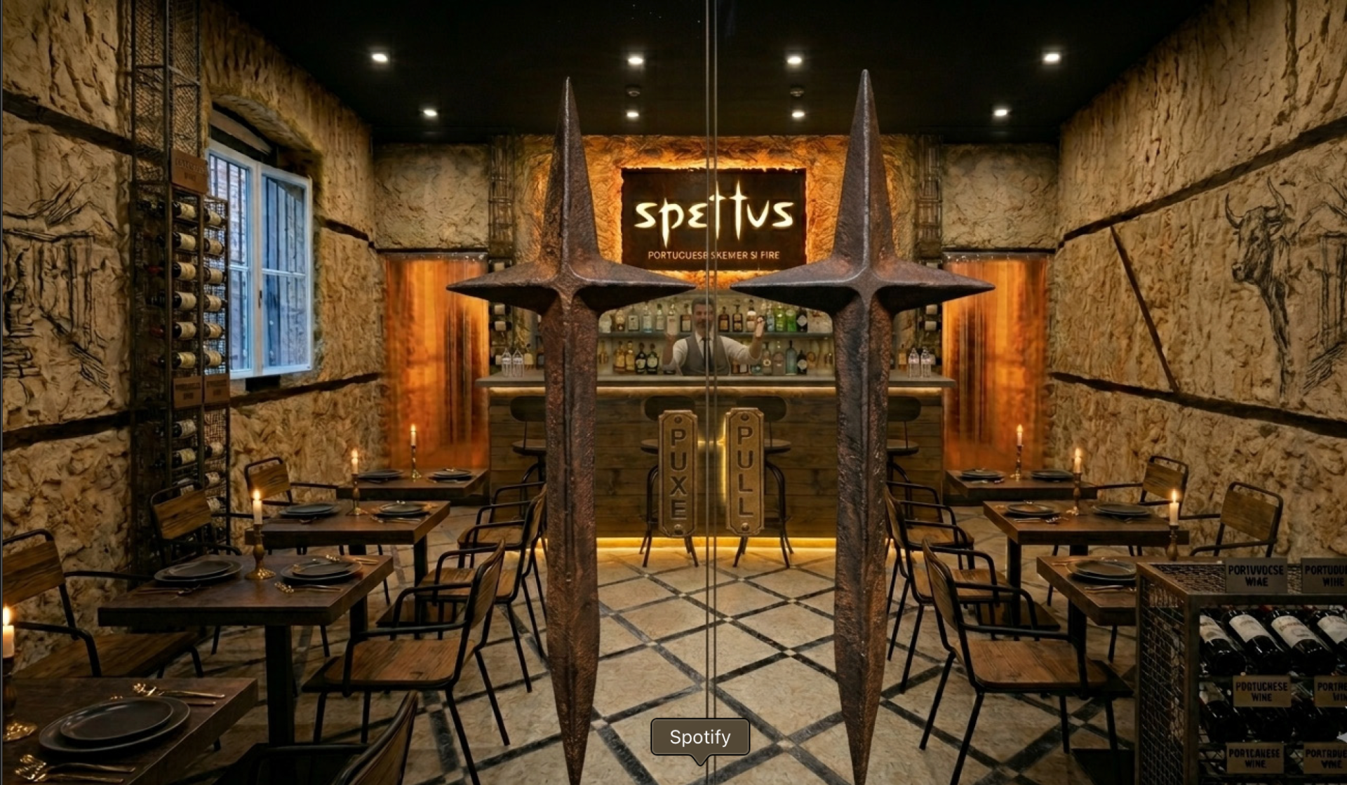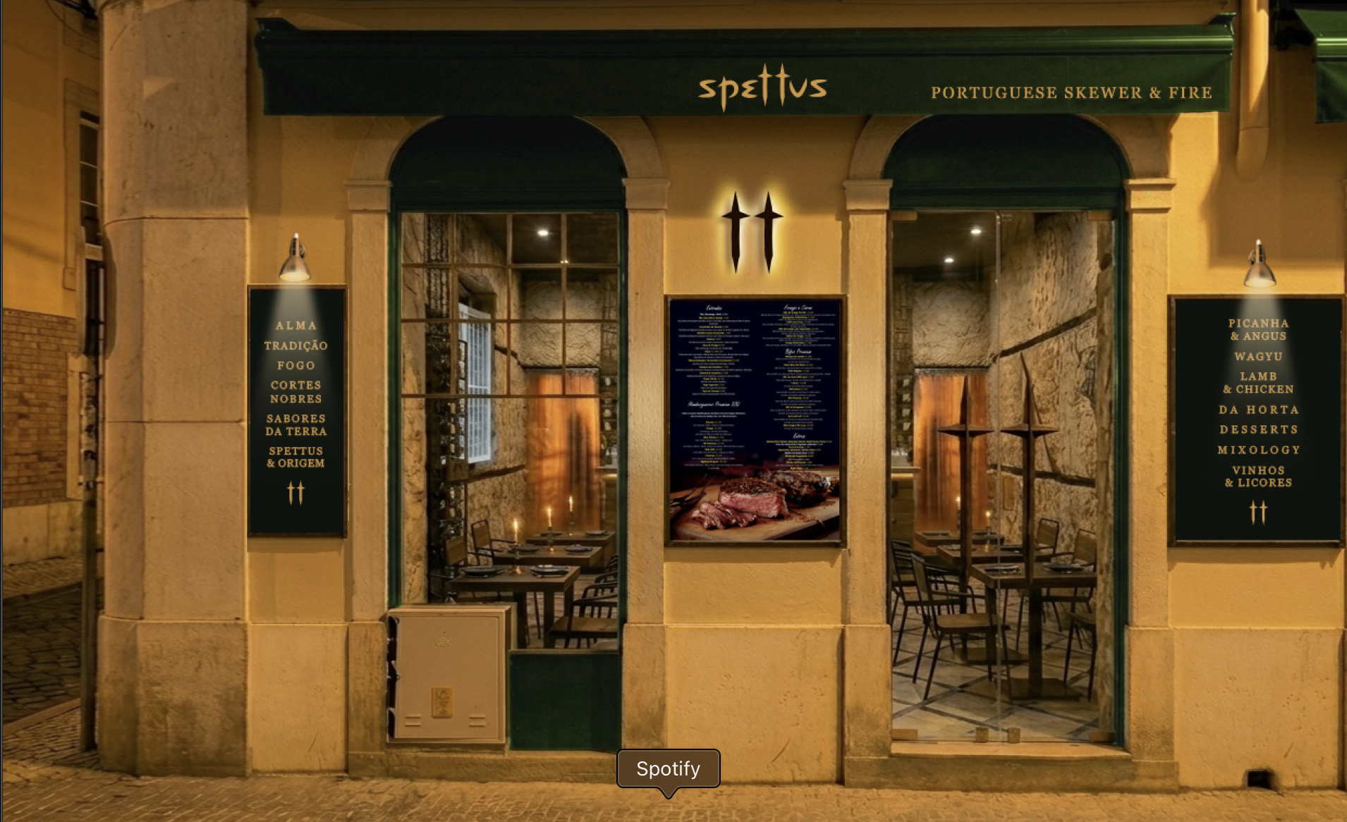 No speTTus, as espetadas são servidas em espetos de aço ou pau de louro, suspensa sobre a mesa — uma experiência visual e gastronómica única inspirada na tradição madeirense. A espetada é escolhida por si , cortada e grelhada na hora num forno a lenha.